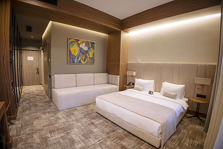 The spacious double room provides air conditioning, soundproof walls, as well as a private bathroom featuring a walk-in shower and a bidet. The double room features a mini-bar, a wardrobe, a safe deposit box, an electric kettle and a flat-screen TV. The unit offers 1 bed.